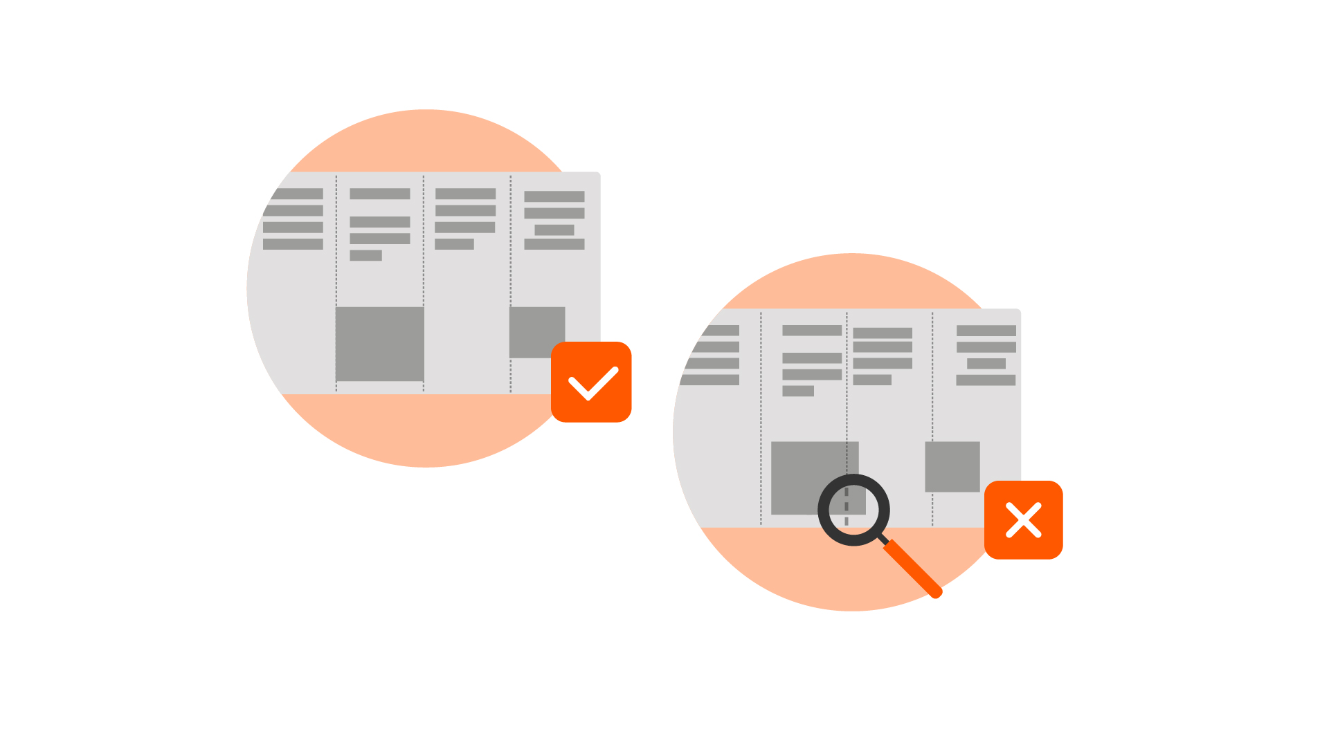 Explication: Si des éléments d’agencement sont placés de manière incorrecte entre les lignes de pliure, l’impression optique de votre produit en subira une influence négative.